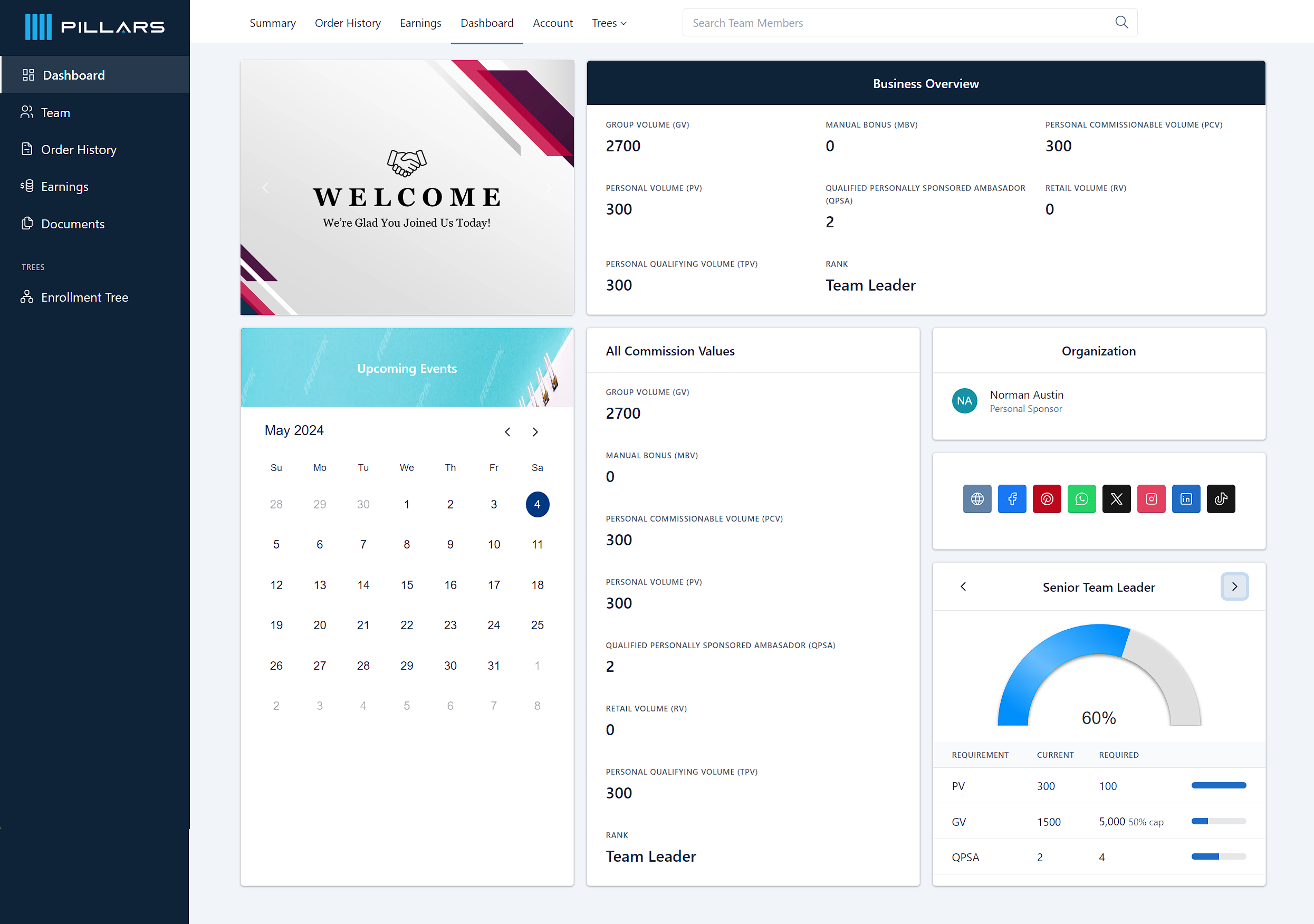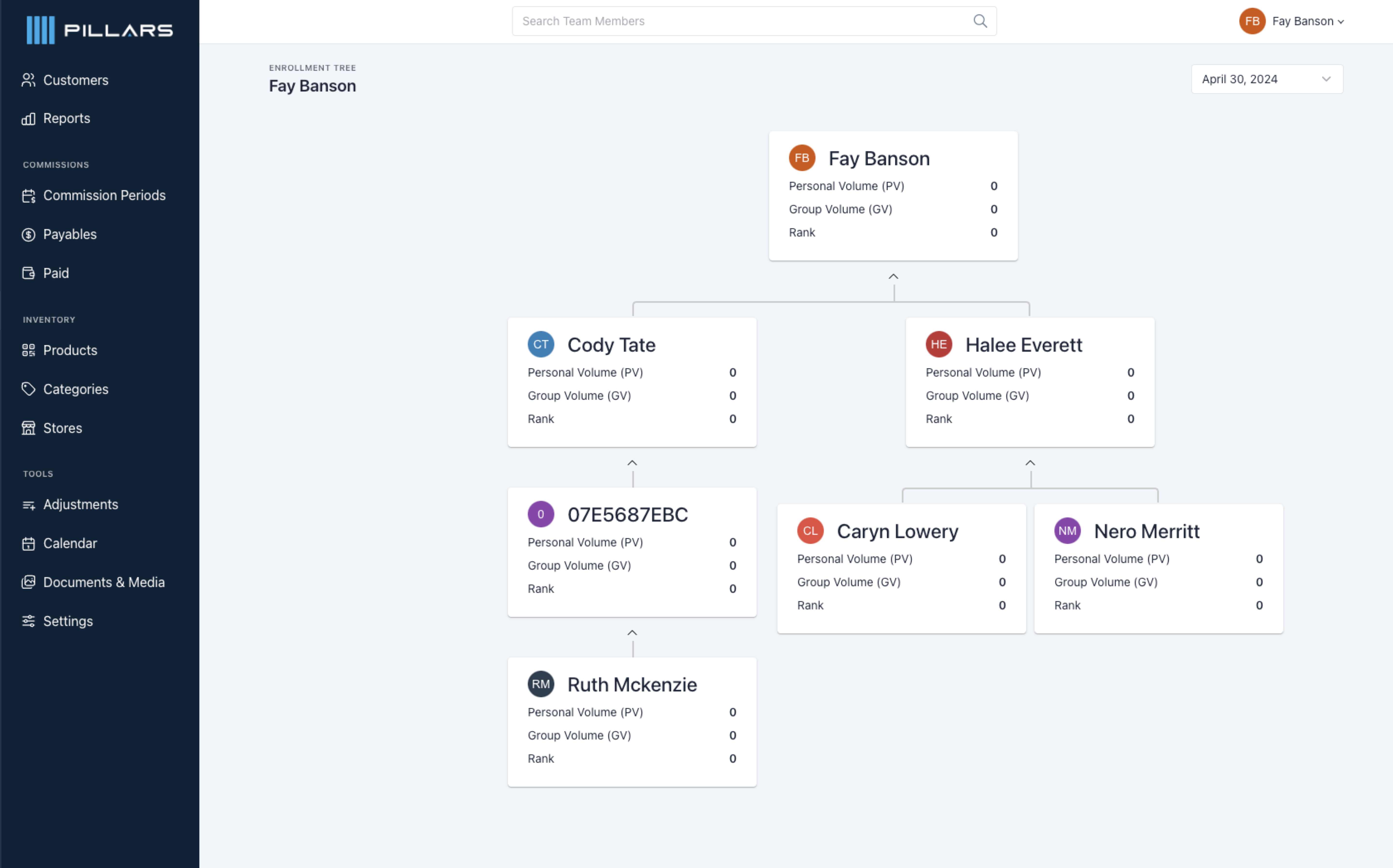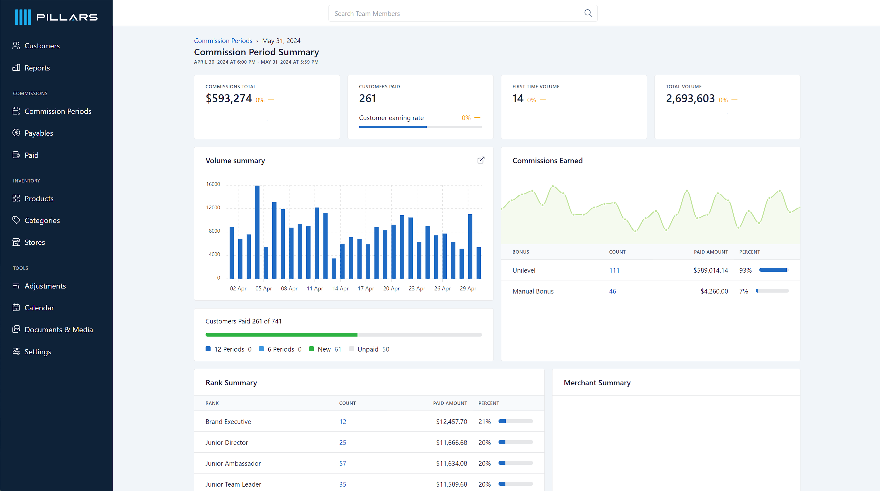 Insights into commissions earned by distributors, including breakdowns by product, and customer per sales period.