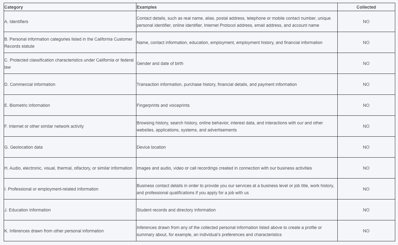 Do we process any sensitive personal information? We do not process sensitive personal information.